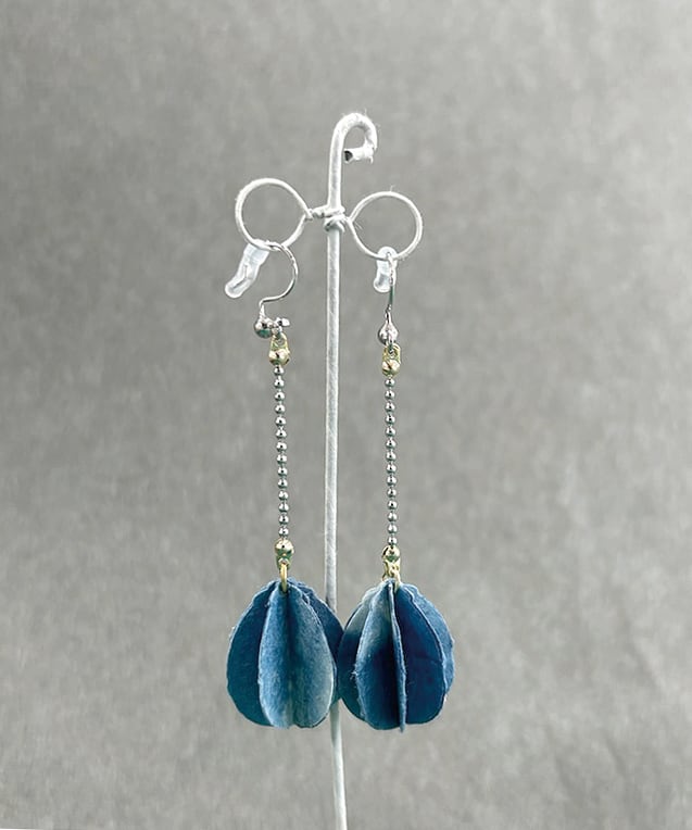 YOBOTYのアクセサリーは和紙選びから始まり、デザイン・留め具の取り付けに至るまで